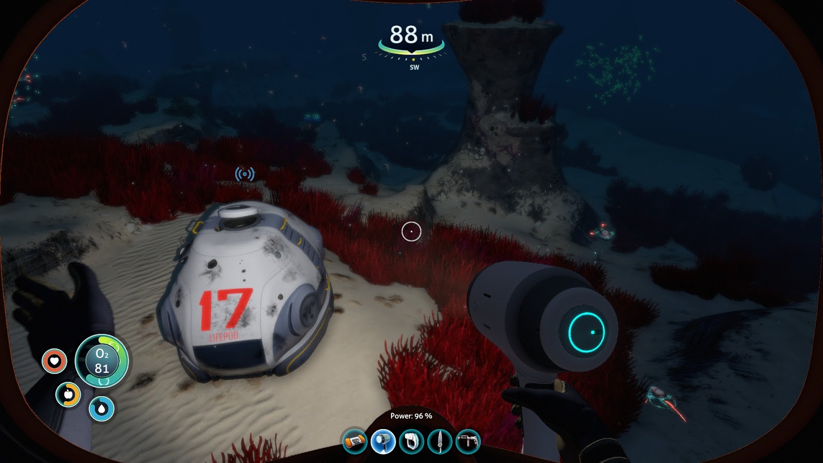 Musím se nějak dostat do hloubky. Můj nadvakrát vylepšený batyskaf Seamoth umí 900 m - což mi přišlo dost a dost. Dokud jsem se v jeskyni nedostal na 910 m a zjistil jsem, že potřebuju víc. O hodně víc. Z jedné mimozemské zprávy jsem usoudil, že energetické centrum mimozemšťanů má být v hloubce 1600 m. Jako cože? Kdeže jsou začátky hry, kdy jsem se jen s dýchací maskou potápěl do 100m a každou minutu stoupal k hladině pro kyslík.